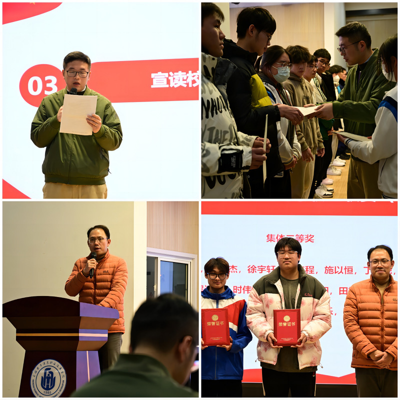 大会在庄严的国歌声中拉开了帷幕。在表彰环节,陈佳超宣读了校级荣誉表彰决定并为校内各项荣誉获奖同学颁奖,徐喾宣读了市级荣誉表彰决定并为校外各项荣誉获奖同学颁奖。