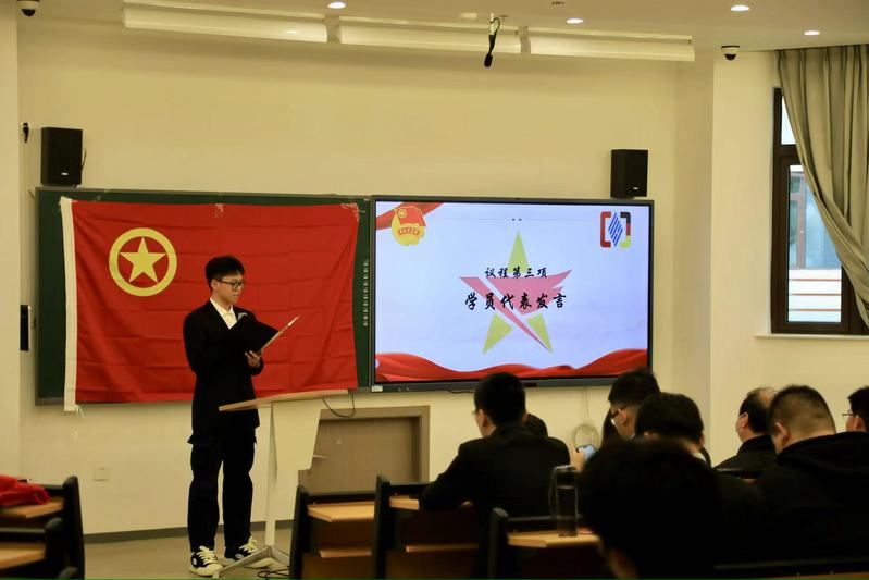 开班仪式在雄壮的国歌声中拉开帷幕。学院党总支副书记孟秋静作开班动员讲话,他先对学员们表达祝贺并提出四点要求:一是要珍惜这次学习机会,认真学习;二是要做马克思主义的坚实拥护者、践行者,经得住组织的考验,经得住同学们的监督;三是要充分发挥团员的先锋模范带头作用;四是要立场坚定,旗帜分明。他勉励学员树立政治坚定、作风过硬、素质全面的优良形象,怀揣梦想,踔厉奋发,创造无愧于时代、无愧于人民、无愧于历史的青春华章。随后,程伟鸿同学作为学员代表表态发言,号召广大青年要坚定不移听党话、跟党走,怀抱梦想又脚踏实地,敢想敢为又善作善成,立志做有理想、敢担当、能吃苦、肯奋斗的新时代好青年。最后,徐济陆老师授予学员代表上海电子信息职业技术学院中德工程学院2024年青马工程旗帜。