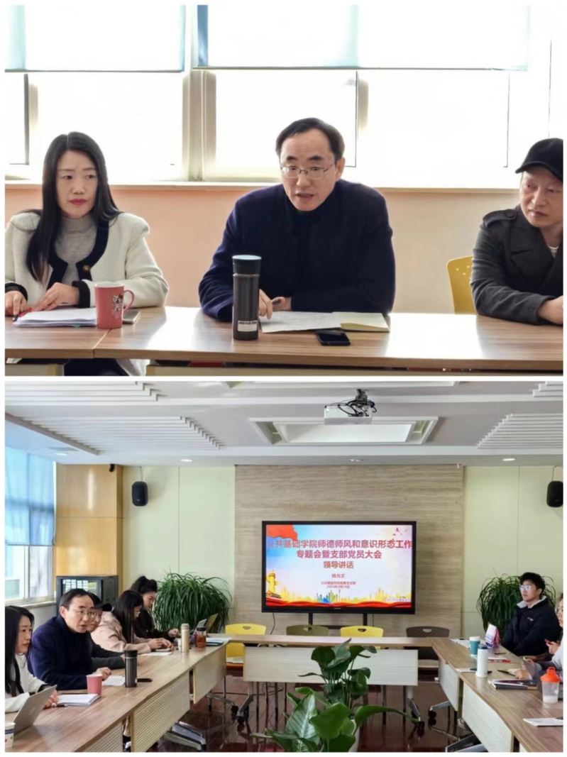 为深入学习贯彻党的二十大精神和习近平总书记关于教育的重要论述,推进师德师风建设,3月19日上午,公共基础学院在A205会议室召开师德师风和意识形态工作专题会议。会议由直属党支部书记朱清主持,学院全体党员及教师代表参加。