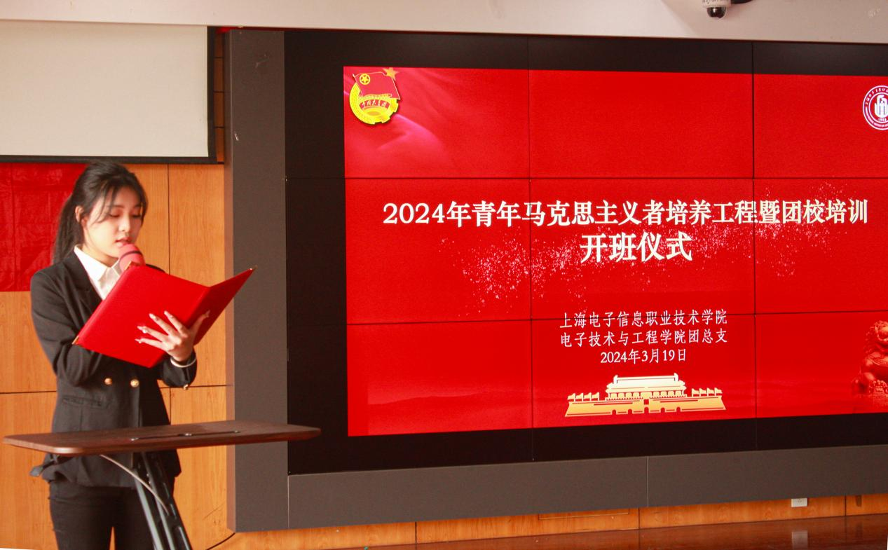 为团结引领广大青年和团干部持续深化学习习近平新时代中国特色社会主义思想和党的二十大精神,进一步加强对青年大学生的思想政治引领,引导青年学生成长为中国特色社会主义事业的合格建设者和可靠接班人,2024年3月19日中午,电子技术与工程学院“青年马克思主义者培养工程暨团校培训”开班仪式于I401举行。学院党总支副书记、副院长杨烨萍,团总支负责人潘永梅,团总支干事、各团支部书记、学生骨干、入团积极分子等100余人参加此次会议。本次开班仪式由学院团总支干事徐斯佳主持。