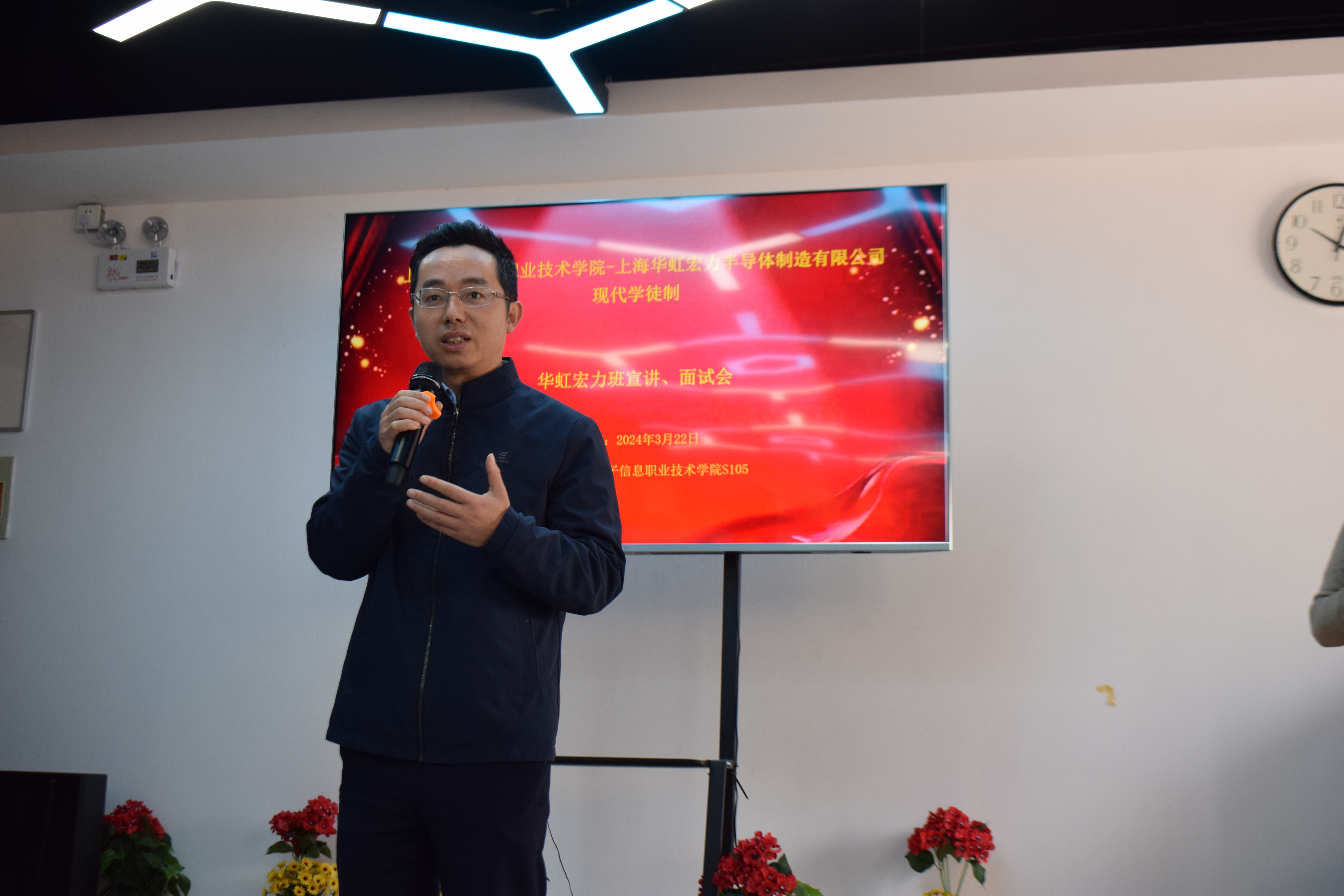 3月22日上午,学校携手上海华虹宏力半导体制造有限公司,在电子技术与工程学院S楼1楼举办现代学徒制宣讲会。校党委副书记、院长赵坚,校教务处处长、校企合作中心主任兰小云,电子学院院长邵瑛亲临现场。华虹宏力技术主管和人事主管给现场的师生进行了现代学徒制项目宣讲。