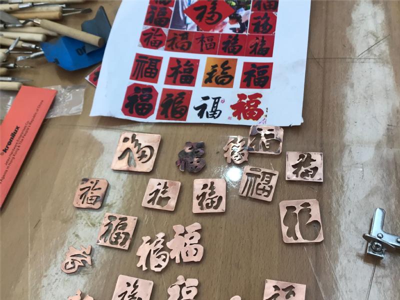 活动中,吴二强老师介绍了中国“福”字的文化寓意,“福”字作为中国传统文化中的重要元素,象征着幸福、美满和吉祥。随后,留学生在吴二强老师的带领下,每人选择自己喜欢的“福”字,从烘干、粘贴、锯割到打磨,自己动手制作铜板“福”雕。经过近三个小时的体验,留学生完成了属于自己的“福”雕,他们纷纷拍照留念,将美好的祝福传递给家人和朋友。