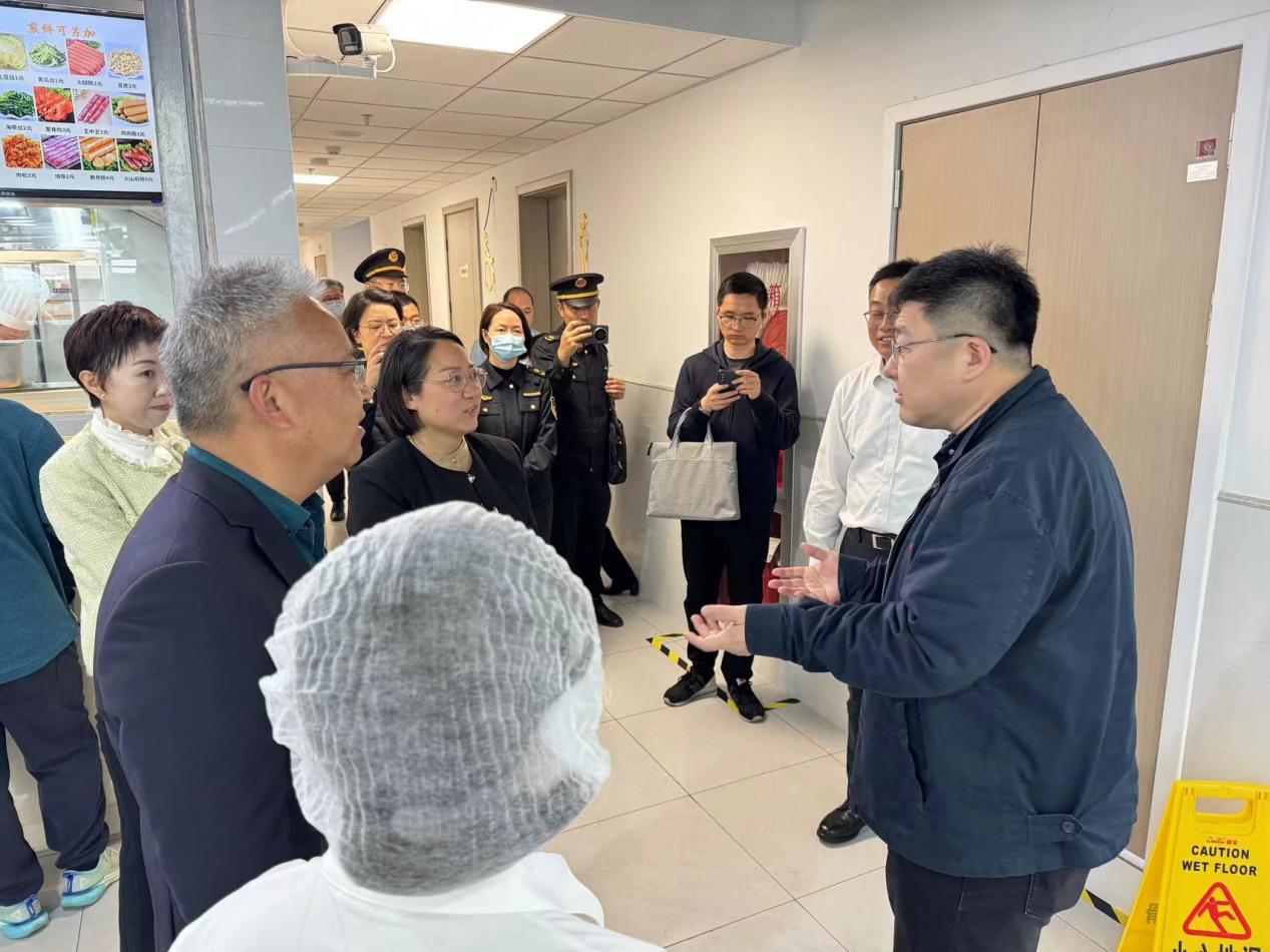 在进行实地走访过程中对食堂的多项关键方面进行了详尽审查,包括食堂的管理制度、主副食品及粮油的储藏条件、场所及物品的清洁程度、餐具的清洗和消毒流程、“明厨亮灶”工作的执行情况、从业人员的健康状况以及他们的操作规范性等。此外,王淳特别强调了食品安全的主体责任以及餐饮经营企业的应夯实相应职责,还对自检自查进行了更为细致要求,旨在彻底消除任何可能的食品安全风险隐患。