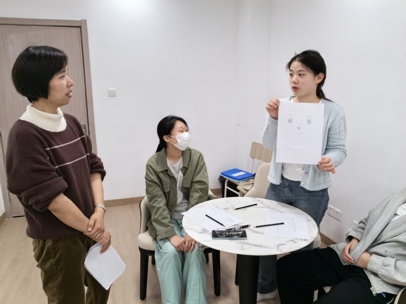 本次活动由中德工程学院畅心易站强佳璐老师主持。活动伊始,为缓解大家初次见面时的紧张情绪,了解学生近期的心理状态,强老师与大家进行了简单的沟通,并将所有人分成了3个小组,鼓励同学们分享理想中三年后的生活状态,并为学生提供了专业指导和建议,提醒同学们可以通过非语言方式关注自身心理健康,帮助他们更好地应对生活中的困难和挑战。随后,同学们跟着老师的引导,在纸上画出了心中的“平行线”,通过字符、文字、人物的装饰展现内心世界。他们用心去感受每一笔每一线,将自己的情感和思考融入到作品中。最后,大家相互交流心得体会,分享创作经验与感悟,整个活动现场洋溢着欢乐而温馨的氛围。