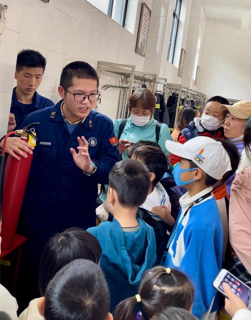 从去年10月至今,消防救援与贯通学院22消防救援(一贯)1班8位学生志愿者持续担任闵行消防救援站的消防讲解员,为社区居民讲解消防装备知识和安全逃生知识。