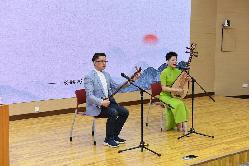 为深入贯彻落实党的二十大精神,弘扬海派文化精神,为打造文化自信自强的“上海样本”贡献力量。4月16日下午,校工会特别邀请到上海评弹艺术传习所(上海评弹团)高博文团长、国家一级演员陶莺芸到校进行《心目中的江南》评弹导赏活动。活动以讲演结合形式,从历史、发展、艺术特征及表演多方位讲唱演,让师生沉浸式感受海派文化“江南风情”,领略评弹艺术之美,传承中华优秀文化。活动还邀请了上海市教育工会、上海海事大学、上海电机学院、上海海关学院等兄弟高校工会干部到校观摩。