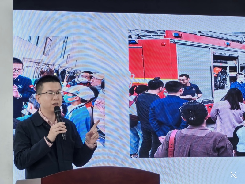 张豪介绍了22消防救援1班8位学生自从去年10月以来,在长达七个月的讲解员聘期中,每周六赴闵行消防救援站开展志愿服务的情况。在长期的志愿服务实践中,8位学生的综合能力有了明显的提升,其中有5位同学参加并进入上海市大学生创课大赛市级决赛前二十名,为学校和班级争得了荣誉。张豪强调第一批消防志愿者的任务已经圆满完成,志愿服务的接力棒交到了23级学生手中,希望广大同学积极奉献爱心,让志愿服务之光更加闪耀,让向上向善更加蔚然成风,为奋力谱写中国式现代化建设新篇章持续提供强大精神力量。(供稿:消防救援与贯通学院 文/图:黄郁)