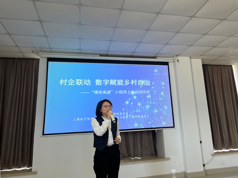 5月10日,通信学院党员教师和学生志愿者在党总支副书记江龙、副书记、副院长范晓燕带领下,赴党建共建单位——奉贤区西渡街道南渡村,参加365官网师生团队为南渡村开发的“博弈南渡”小程序启动仪式。