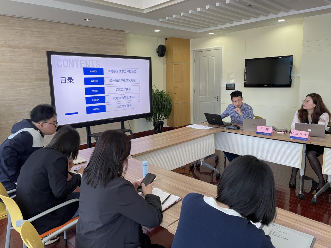 王向红主席首先向六家代理机构简要介绍了学校在知识产权申请与管理方面的政策导向、科研成果情况及未来发展规划,同时对专利代理工作的管理目标、代理效率、专利申请质量和非正常申请等指标提出了具体而明确的要求。