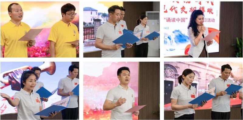 在当代社会,有许多优秀的文学作品,映射着时代的风华与变迁。在第三篇章“当代之声”中,党员教师们诵读了《国歌响起》和《诗颂风华》等现代文学作品,展现了现代诗歌中的时代脉搏与气息,表达老师们对祖国的热爱与期待,激发了大家的爱国热情和时代责任感。