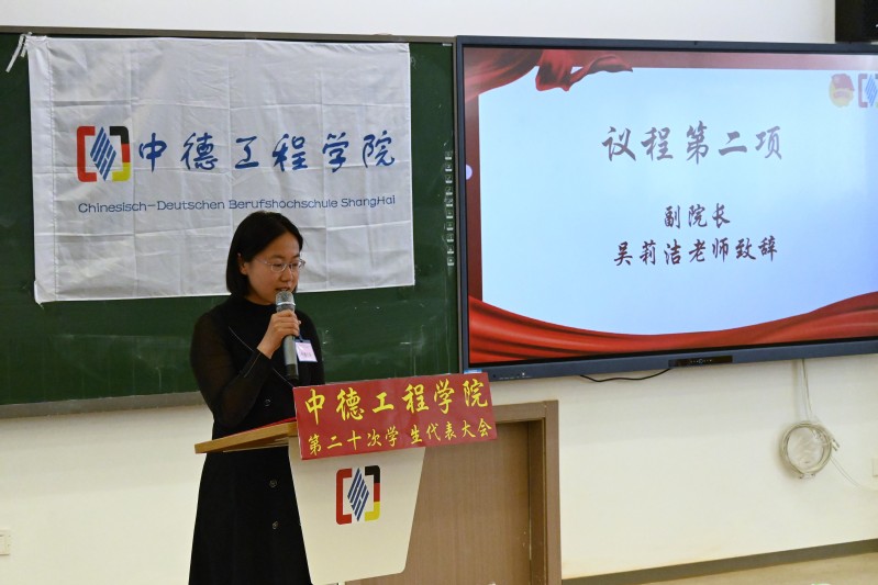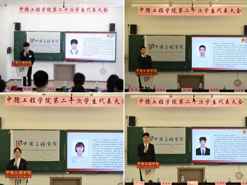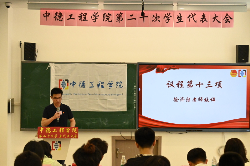 为深入学习和贯彻党的二十大精神,回顾和总结我院过去一年的学生工作,积极引领全院青年学生以主人翁姿态参与学院各项工作。5月24日,在金山校区JS111隆重召开了中德工程学院第二十次学生代表大会。中德工程学院副院长吴莉洁老师、党总支专职组织员徐济陆老师、团总支临时负责人张裕老师,各辅导员及中德工程学院的95名学生代表齐聚一堂。