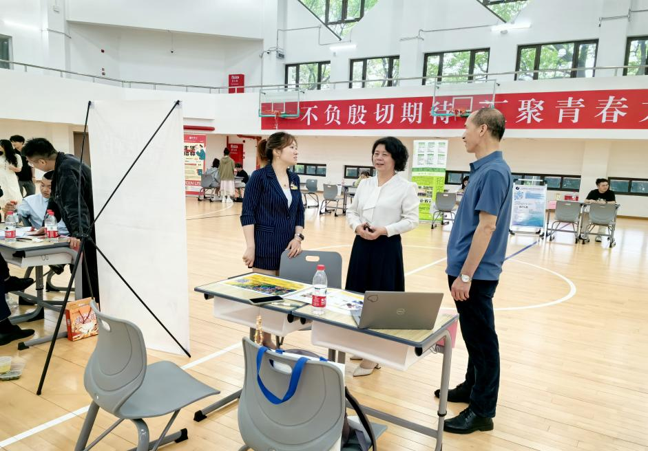 学校副院长窦争妍、经济与管理学院党总支负责人以及专业教师、辅导员到现场了解企业招聘需求、关心学生求职情况。