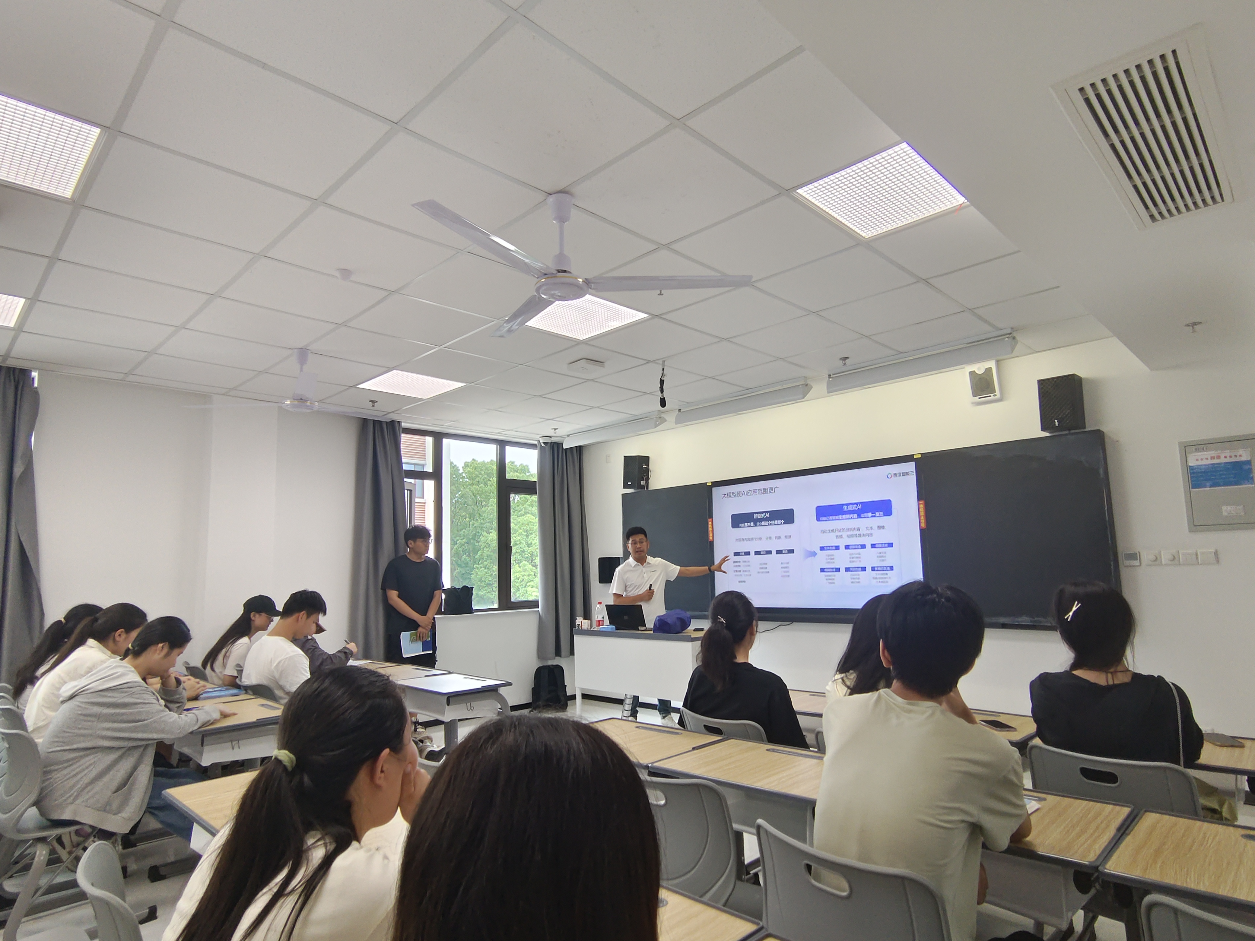 为帮助我院学生深入了解人工智能在金融业务中发展应用及把握就业新机遇,6月13日,经济与管理学院邀请优秀校友刘飞虎开展“生成式人工智能驱动金融行业变革与金融AI岗位就业新机遇”的主题讲座。刘飞虎现任百度智能云区域三部大客户业务拓展部总监,专注大数据和大模型在金融行业的应用,以其深厚的行业背景和对人工智能技术的独到见解,为师生们带来了一场深入浅出的知识盛宴。