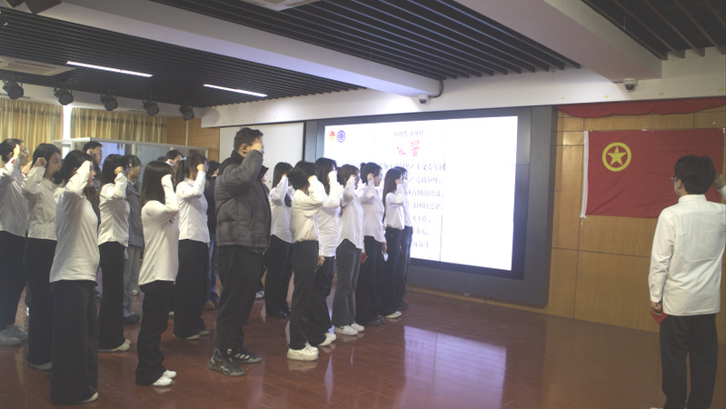 随后茌良计、副院长邓玉华共同为新团员代表颁发团章、团徽与团员证,全体新团员面向团旗庄严宣誓,“为共产主义事业而奋斗”的铮铮誓言响彻全场,表达了听党话、跟党走的坚定决心。