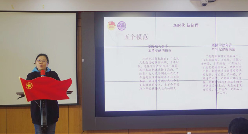 仪式上,外语学院院长肖潇为全体新团员讲授“入团第一课”。她结合“一二·九”运动的光荣历史,深入解读爱国主义精神的时代内涵,强调共青团作为党的助手和后备军的重要作用,并以习近平总书记提出的“五个模范”为标尺,要求新团员争做理想远大、信念坚定,刻苦学习、锐意创新,敢于斗争、善于斗争,艰苦奋斗、无私奉献,崇德向善、严守纪律的模范,鼓励大家勤奋学习、锤炼本领,积极向党组织靠拢,努力成长为社会主义事业的合格建设者和可靠接班人。