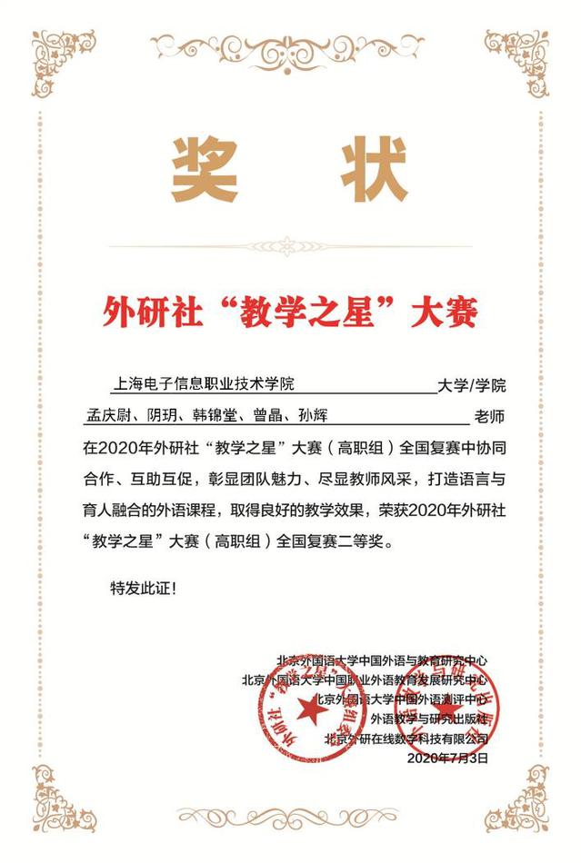 2020年6月,外语学院英语系孟庆尉、阴玥、孙辉、曾晶、韩锦堂五位老师组成参赛团队,参加由教育部高等学校外语教学指导委员会、教育部高等学校英语专业教学指导分委会、北京外国语大学中国外语测评中心和外语教学...