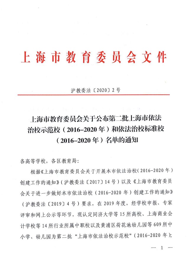近日,《上海市教育委员会关于公布第二批上海市依法治校示范校(2016-2020年)和依法治校标准校(2016-2020年)名单的通知》(沪教委法〔2020〕2号)发布,上海电子信息职业技术学院及中...