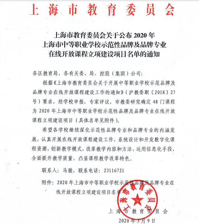 近日,上海市教育委员会下发《上海市教育委员会关于公布2020年上海市中等职业学校示范性品牌及品牌专业在线开放课程立项建设项目名单的通知》,公布了2020年上海市中等职业学校示范性品牌及品牌专业在线开放课程立项...