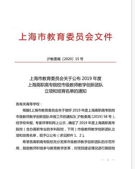 365官网获批“2019年度上海高职高专院校市级教师教学创新团队”2项