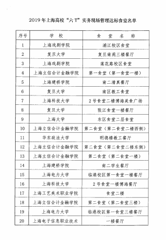 《关于授予华东师范大学等高校食堂“上海高校‘六T’实务现场管理示范食堂、上海戏剧学院等高校食堂“上海高校‘六T’实务现场管理达标食堂”的决定》(沪学后协餐〔2020〕2号)公布,我...