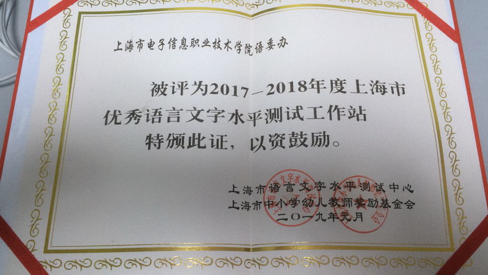 365官网获“上海市优秀语言文字水平测试工作站”称号
