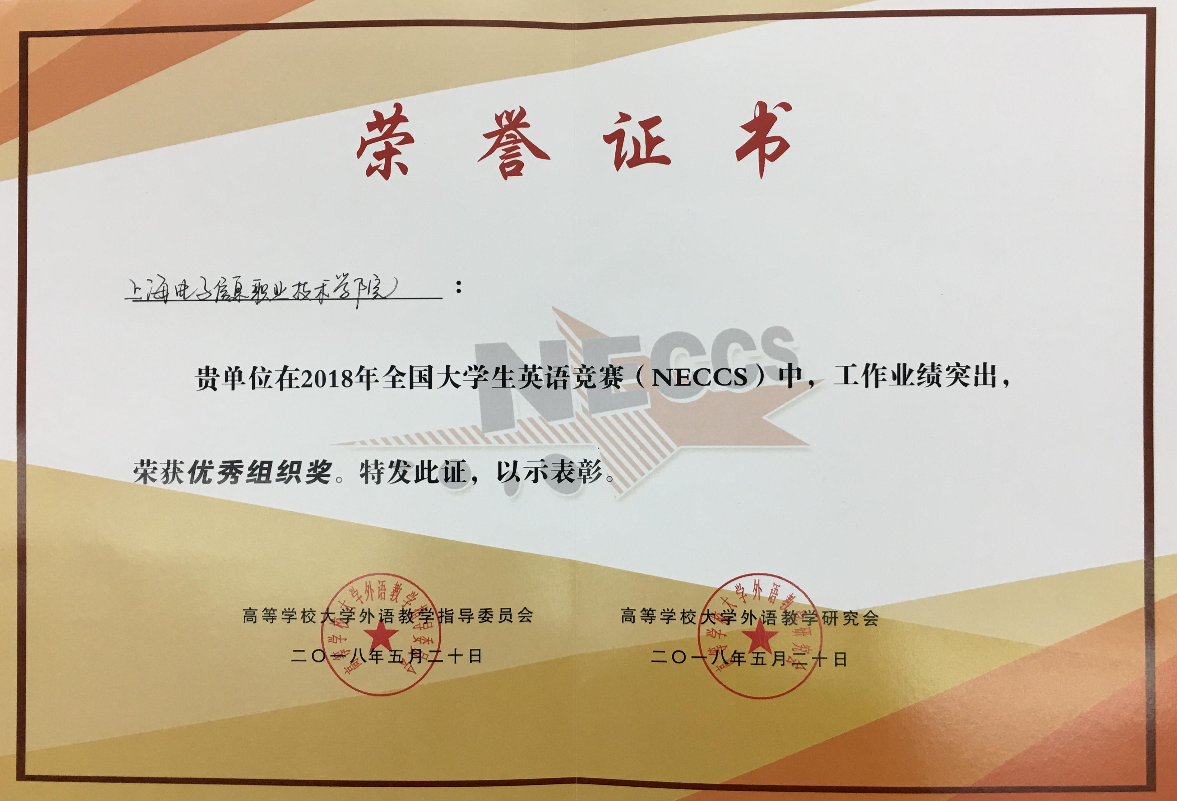 365官网荣获2018年全国大学生英语竞赛(NECCS)高职组(D类)一等奖