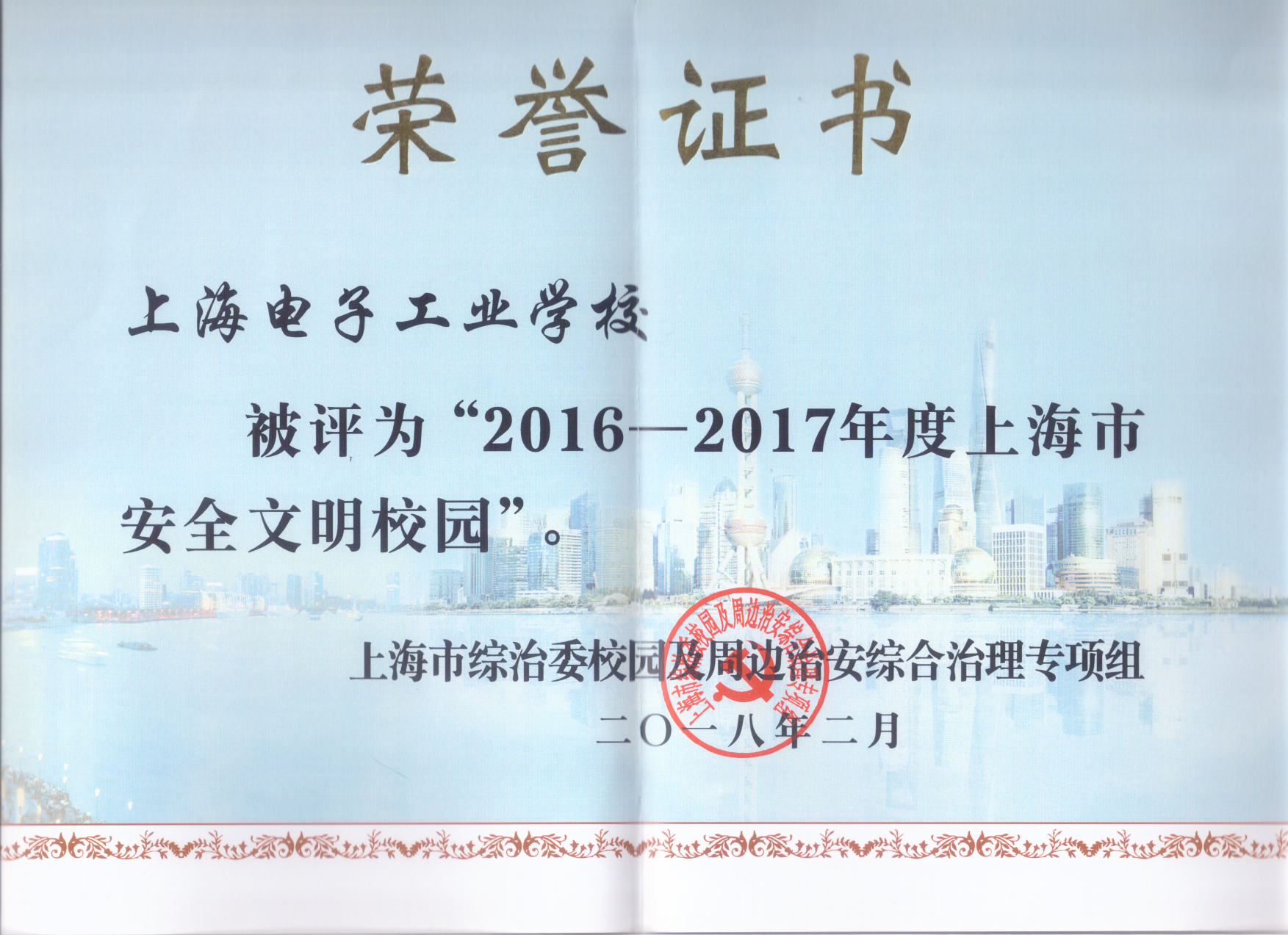 365官网中专部(上海电子工业学校)被评为“2016—2017年度上海市安全文明校园”