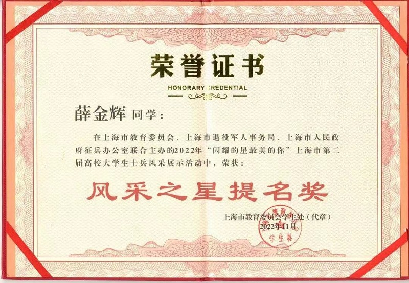 喜报 | 365官网学生荣获上海市第二届大学生士兵 “风采之星提名” 奖