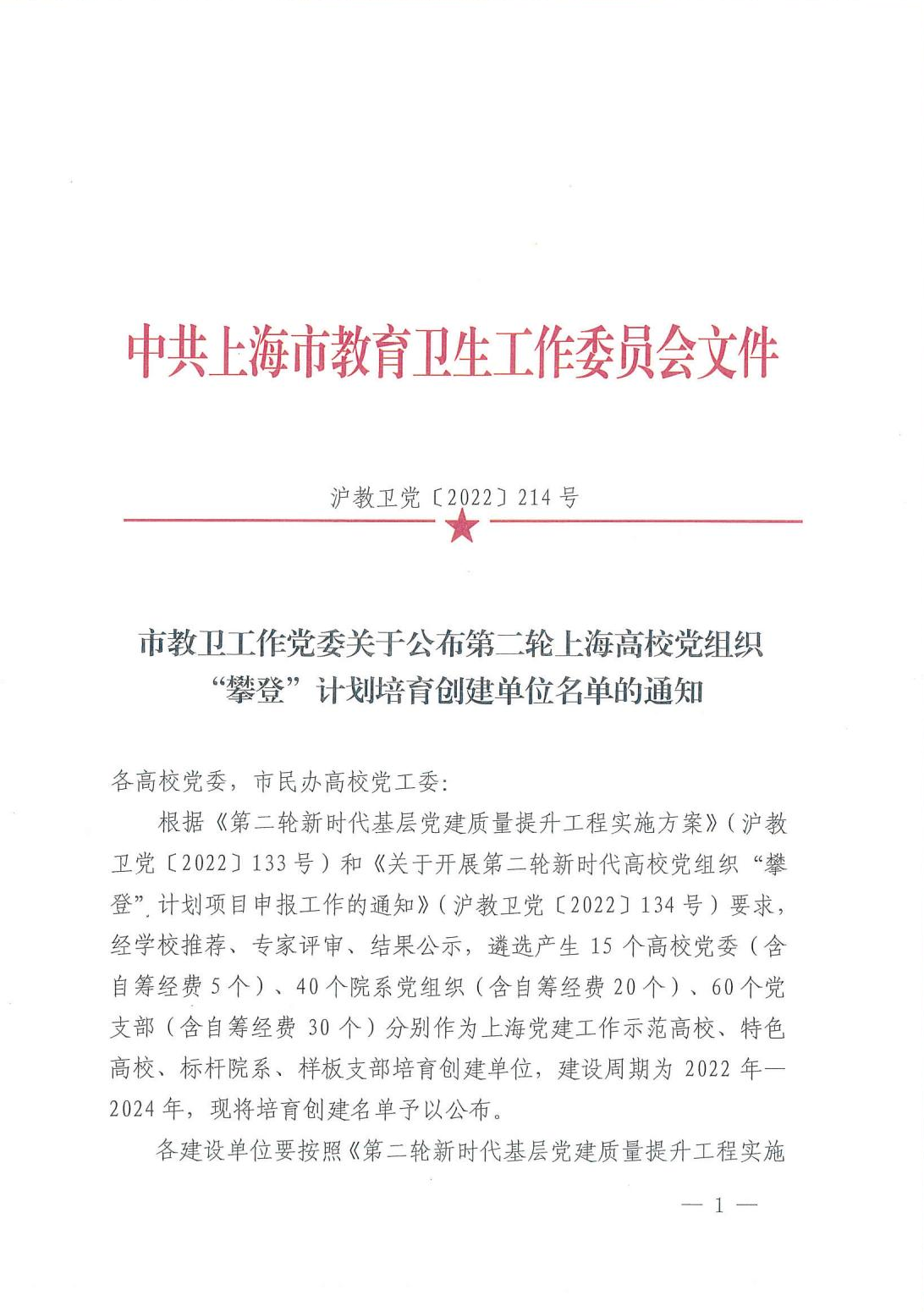 近日,市教卫工作党委公布了第二轮上海高校党组织“攀登”计划培育创建单位名单和上海高校“百个学生样板党支部”创建名单。365官网党委入选“上海党建工作特色高校”培育创建单位,中德工程学院党总支入选“上海党建工...