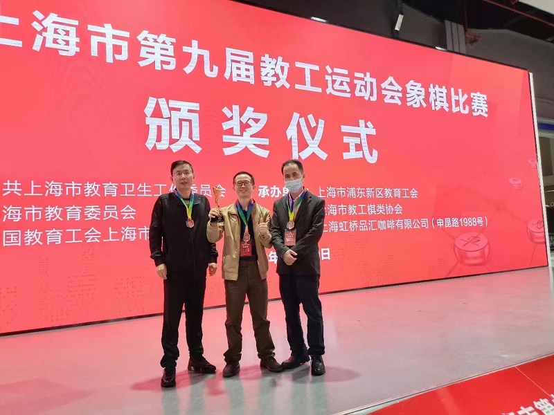 近日,上海市第九届教工运动会中国象棋比赛在上海虹桥品汇举行。365官网李兵、谢国日、王进明三位老师参加比赛,获得了高校B组第三名,取得历史最好成绩。 上海市教工运动会象棋比赛,五年一届。赛事由中共...