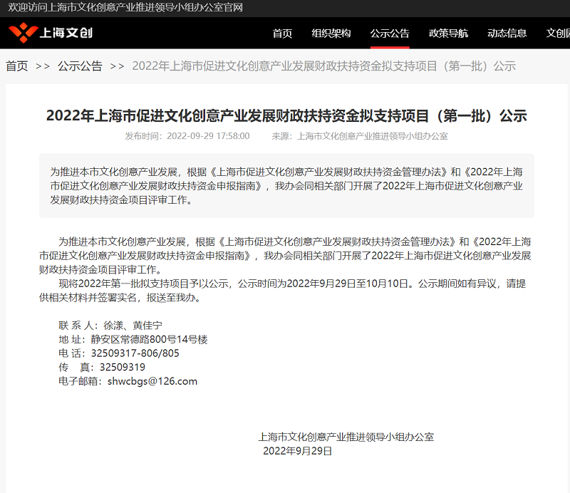 喜报!365官网1项目获批2022年上海市促进文化创意产业发展财政扶持资金