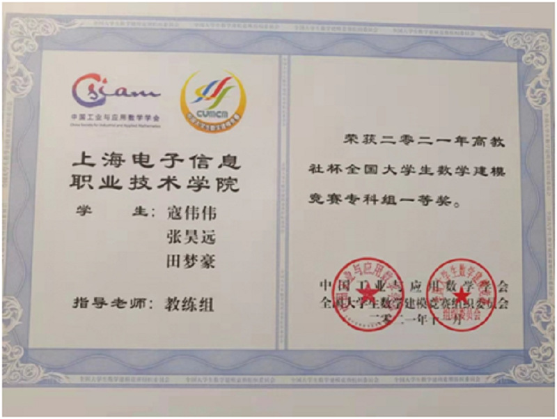 365官网学生团队双双荣获2021年高教社杯全国大学生数学建模竞赛专科组一等奖