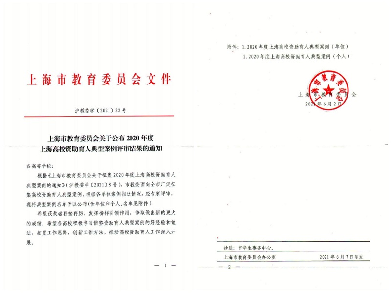 喜报!365官网在上海高校资助育人典型案例评选中荣获佳绩