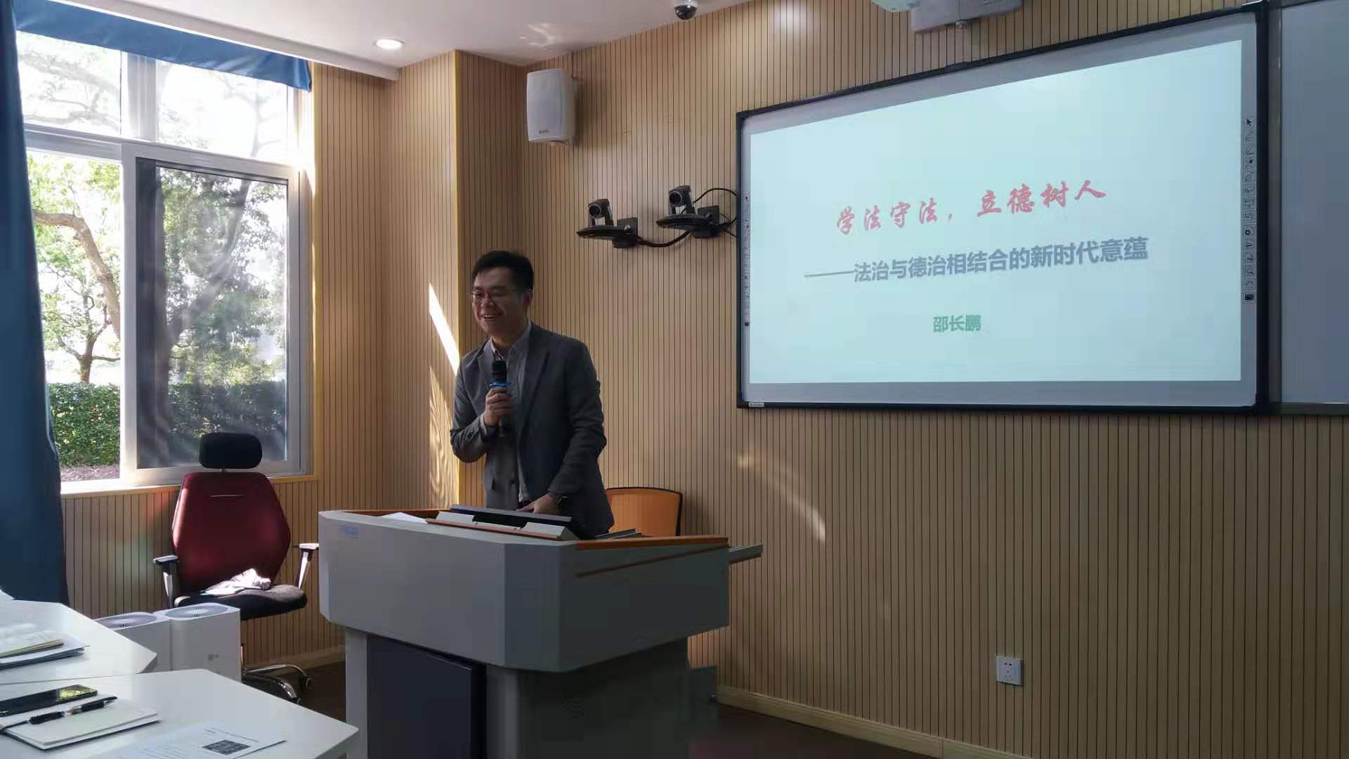 2019年10月18日,外语学院邀请上海电机学院马克思主义学院邵长鹏博士对全体教职工开展法制教育和法律宣传讲座。邵博士以“学法守法,立德树人”为主题,深刻讲解了法治与德治相结合的新时代意蕴。邵博...