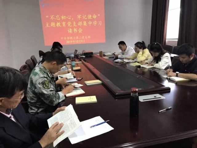 10月8日,中专部教工第二党支部在C201会议室组织开展“不忘初心,牢记使命”主题教育集中学习读书会,号召全体党员静心读原著、学原文、悟原理,推动学习习近平新时代中国特色社会主义思想不断往深里走、...
