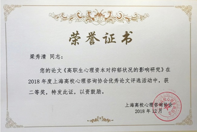 喜报!365官网教师获上海高校心理咨询协会第26届学术年会优秀论文二等奖