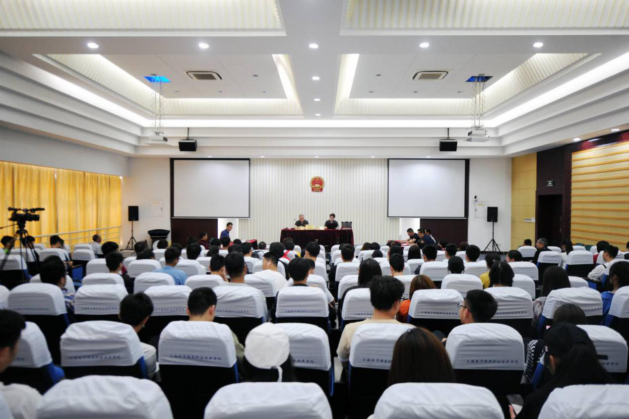 为贯彻全面依法治国战略,2019年5月31日,学校与奉贤区人民法院奉城法庭举办庭审进校园活动。本次活动受到了师生的广泛关注,下午1时,神圣的国徽正中悬挂,100余名学生已提前来到中德C108报告厅等待这次难得的开庭...