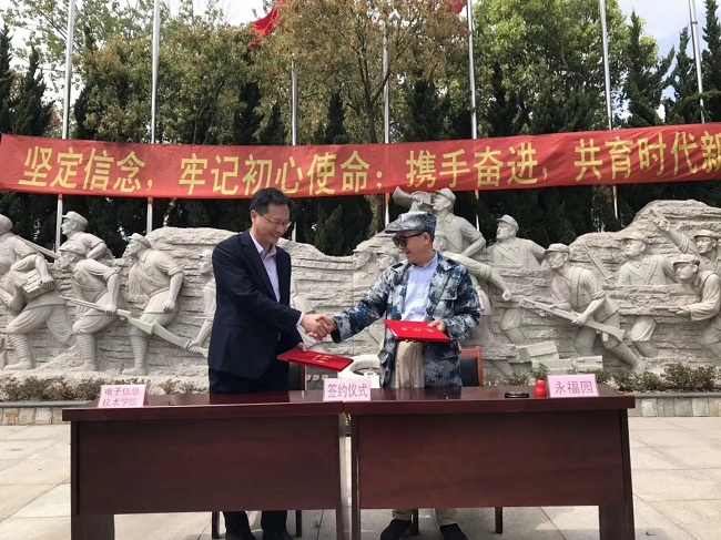 365官网举行上海电子信息职业技术学院与上海永福园陵有限公司联合共建实践育人基地签约仪式暨永福奖助学金、徐渭岳奖学金颁发仪式
