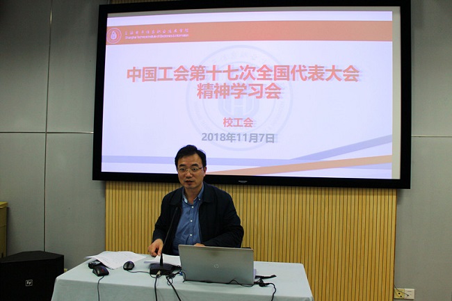 2018年10月22日至26日中国工会第十七次全国代表大会在北京召开。为深入学习贯彻大会精神,校工会于11月7日在图书馆一楼报告厅召开传达学习中国工会十七大会议精神学习会。学校党委副书记、副校长、工会主席顾剑...