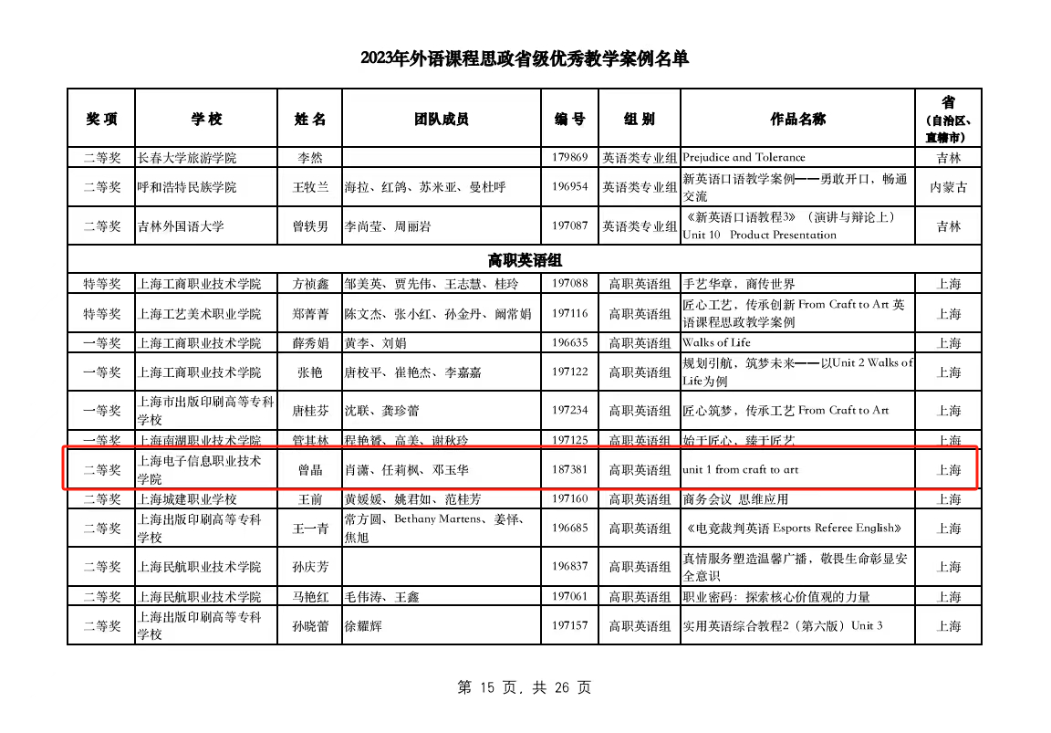 1111MicrosoftInternetExplorer402DocumentNotSpecified7.8 磅Normal0近期,高等教育出版社、全国高校教师网络培训中心和中国外语编辑部共同开展了2023年外语课程优秀教学案例征集与交流活动。通过初赛选拔、省级遴...
