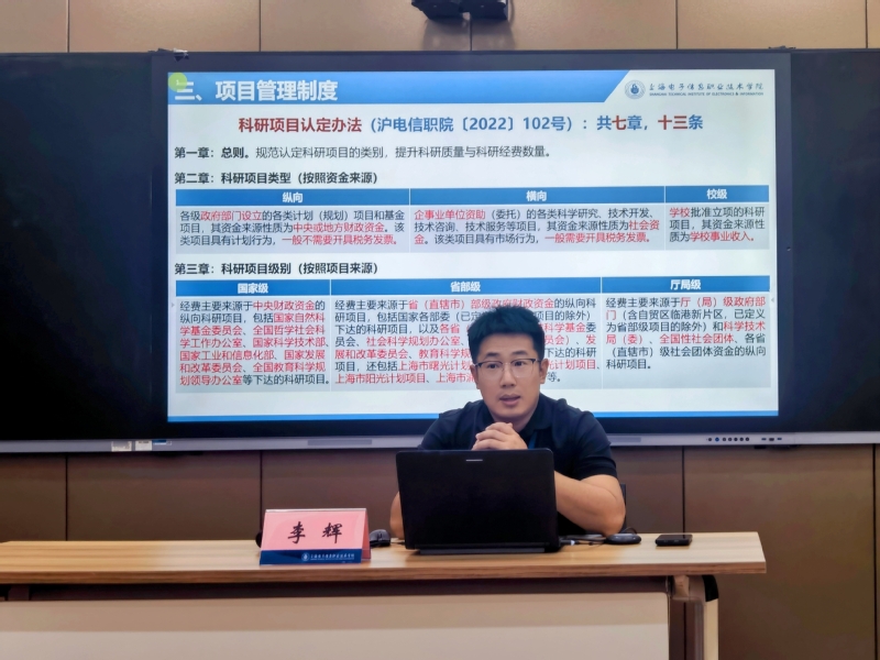 10月18日下午,学校科研处副处长李辉赴闵行校区为消防救援、贯通学院教师讲解学校科研政策与制度,并与消防贯通学院教师、科研人员开展交流讨论。 会上,李辉老师解读了学校“1+4”科研制度体系、项目管理制...