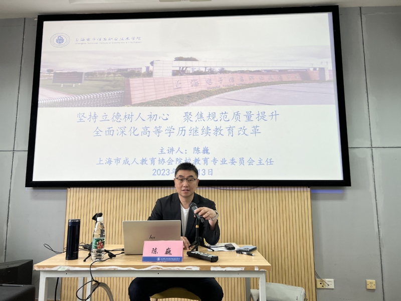 10月13日上午,人事处、继续教育学院在奉贤校区图书馆报告厅联合举办《坚持立德树人初心,聚焦规范质量提升,全面深化高等学历继续教育改革》专题培训。培训由上海市成人教育协会院校教育专业委员会主任陈巍主讲,继...