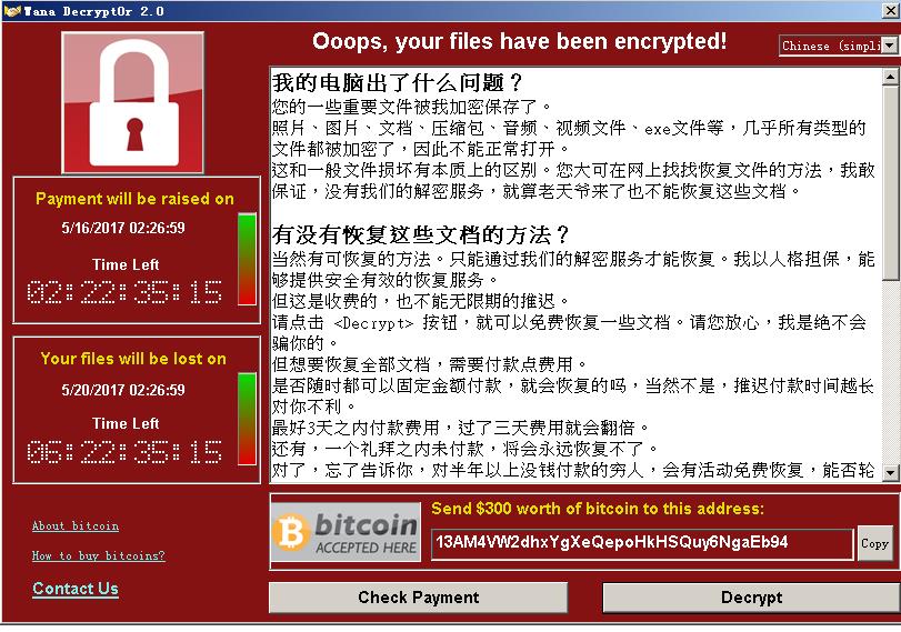 各部门及全体师生: 5月12日全球勒索病毒大规模爆发,鉴于本次病毒攻击来势较猛、国内校园网大面积感染,而且已发现有本校学生的电脑中毒,一旦中毒便无法“挽救”。请各部门及全体师生务必重...