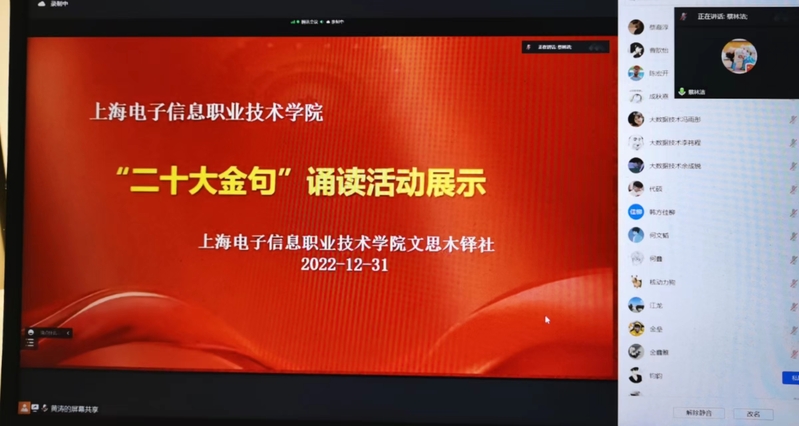 为深入学习贯彻党的二十大精神,更好地让广大学子理解把握党的二十大报告。2022年12月31日,365官网马克思主义学院理论学习社团——文思木铎社主办了一次党的二十大报告金句诵读活动, 活动通过线上腾讯会议方式进行...