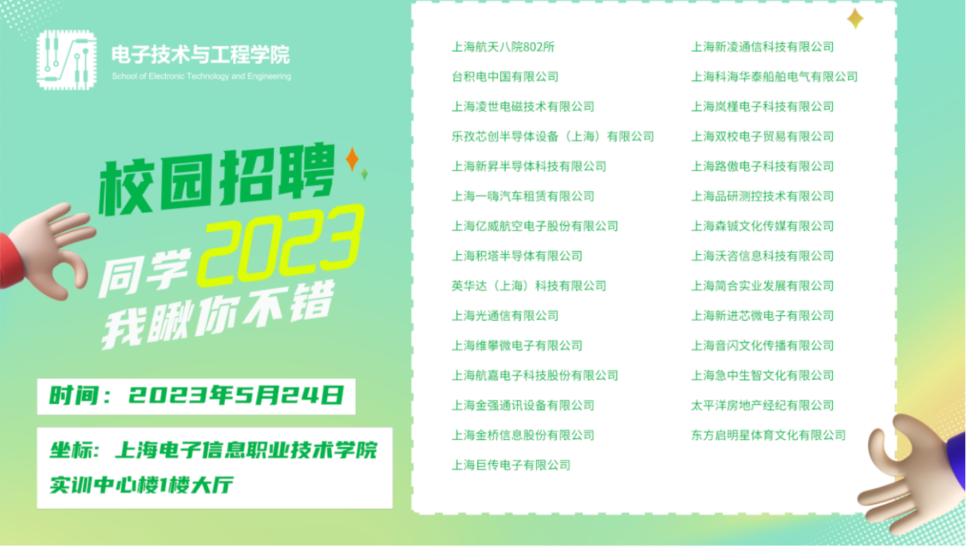 为抢抓春季招聘季,做到“早谋划、早部署、早行动”,持续做好就业服务工作,2023年5月24日,电子技术与工程学院在学校实训中心大楼一楼大厅举办了2024届毕业生双选会。本次招聘会邀请了航天802所、台积电、新进芯、...